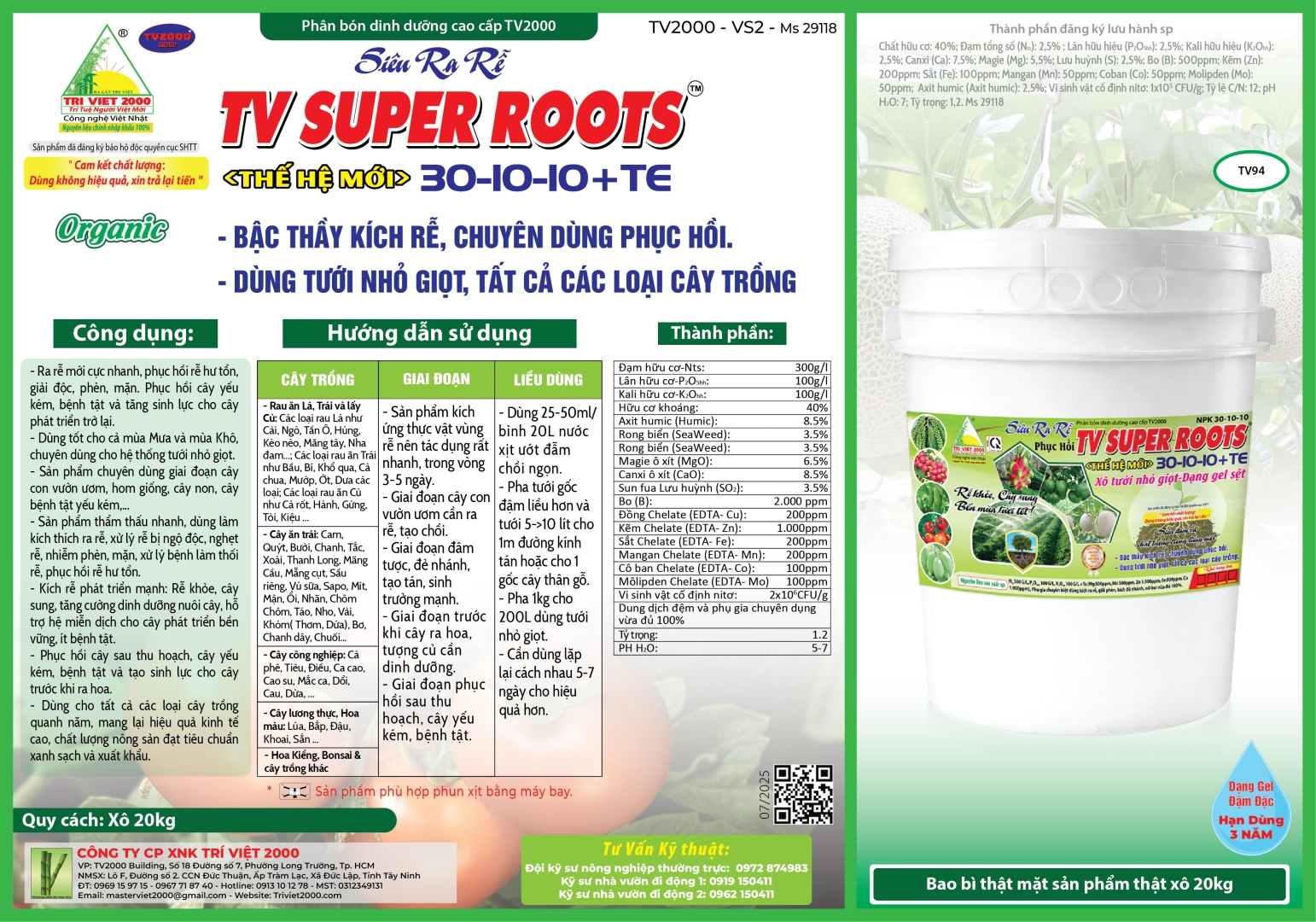 TV 94 - Xô Nhỏ giọt- siêu Phục hồi- Ra rễ - 20Kg